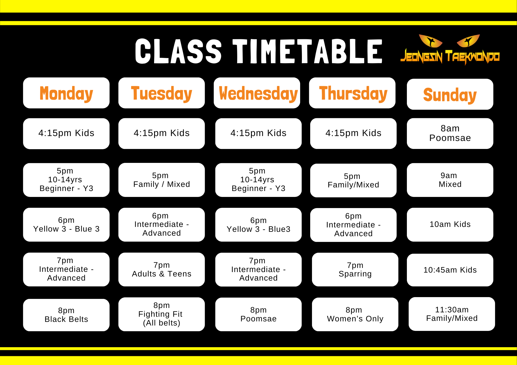 Sparring Thur 7pm / Tues 8pm Poomsae Sun 8am / Weds 8pm